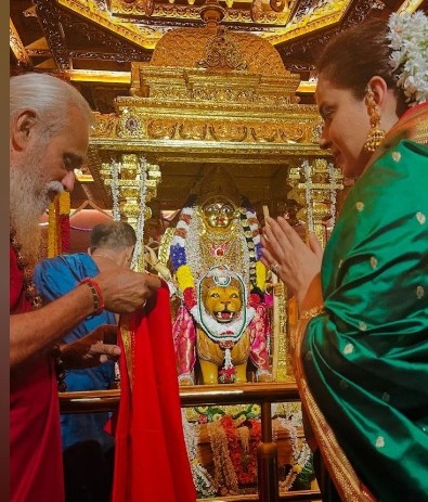 ನಟಿ ಕಂಗನಾ ರನೌತ್ ಶ್ರೀ ದುರ್ಗಾಪರಮೇಶ್ವರಿ ಮತ್ತು ಶ್ರೀ ಹಳೇ ಮಾರಿಯಮ್ಮ ದೇವಸ್ಥಾನದಲ್ಲಿ ಆಶೀರ್ವಾದ ಪಡೆದಿದ್ದಾರೆ