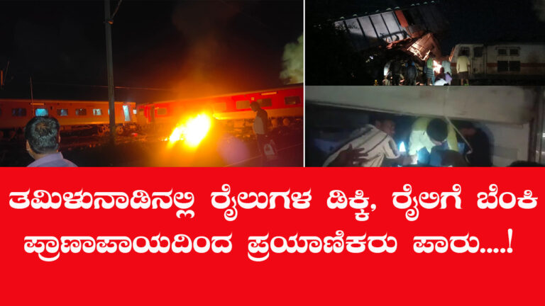 ಚೆನ್ನೈ:ತಿರುವಳ್ಳೂರು ಬಳಿ ಪ್ಯಾಸೆಂಜರ್ ಎಕ್ಸ್ ಪ್ರೆಸ್ ರೈಲು ಸರಕು ಸಾಗಣೆ ರೈಲಿಗೆ ಡಿಕ್ಕಿ ಹೊಡೆದು ರೈಲಿನ 2 ಬೋಗಿಗಳಿಗೆ ಬೆಂಕಿ ಹೊತ್ತಿಕೊಂಡಿದೆ. ಈ ಘಟನೆಯಲ್ಲಿ ಯಾವುದೇ ಪ್ರಾಣಹಾನಿಯಾಗಿಲ್ಲ ಎಂದು ತಿಳಿದುಬಂದಿದೆ
